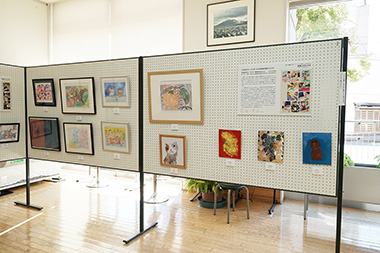 同時に、こ・ふぁん開設以降にアート活動を始めた福祉サービス事業所の取り組みや今後の展望などをパネルで紹介し、活動を通して生まれた作品を披露しました。