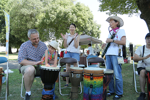 ・みんなで輪になり世界中の打楽器を叩いて楽しむドラムサークル(4日のみ)