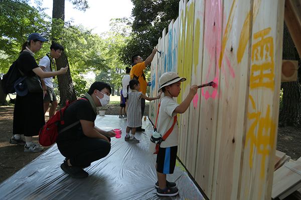 ・ウッドキャンパスに水性アクリル絵の具で自由にペイントをするワークショップ